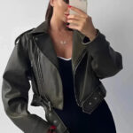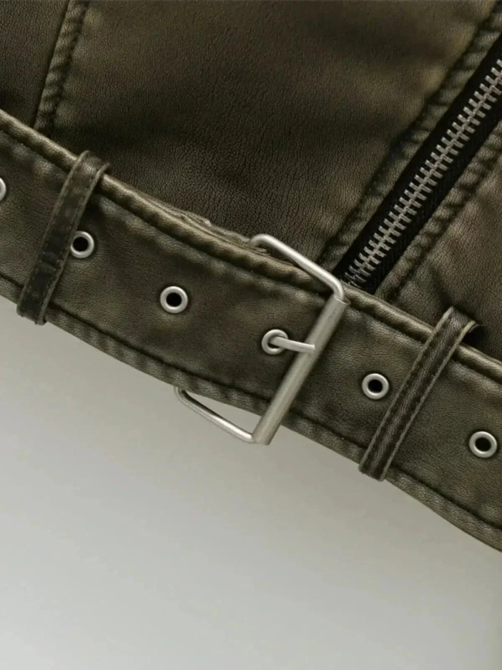 Isla – Krótki dopasowany krój – Kurtka biker z paskiem