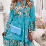 Das „Liora“-Kleid vereint mühelosen Boho-Stil mit femininer Raffinesse. Mit seinem fließenden Schnitt und dem zarten Blumenmuster ist es der ideale Begleiter für sonnige Tage und laue Abende.