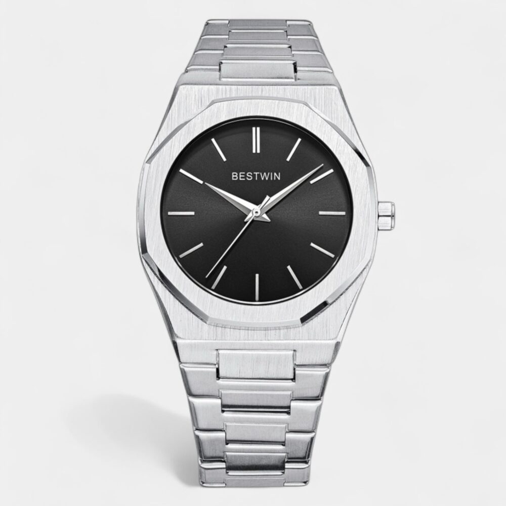 Old Money Metal Watch to więcej niż czasomierz — to manifest. Minimalistyczna tarcza, szczotkowane wykończenia i ośmiokątna luneta przywołują kody wysokiego zegarmistrzostwa bez ostentacji.