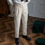 Styl Old Money to klasyczne, eleganckie spodnie — z zakładkami lub proste. Wybierając ten model, w pełni oddasz wartości stylu Old Money i zyskasz elegancję w codziennym wyglądzie.