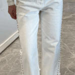 Odkryj casualową elegancję z Valdenza — białymi jeansami, którym luksusu dodają złote ćwieki. Klasyczny prosty krój czyni je idealnymi zarówno na dzień, jak i wieczorne wyjścia.